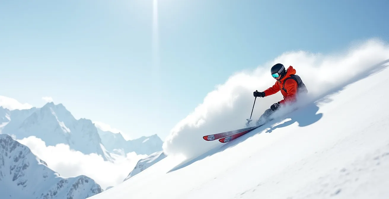 La première consigne que l’on donne souvent pour skier en poudreuse est « mets-toi en arrière pour faire déjauger tes spatules ». Si cette image a un fond de vérité, l’appliquer à la lettre est la recette parfaite pour un épuisement musculaire rapide et une perte de contrôle. Se crisper en position « poids sur les talons » brûle les quadriceps en quelques virages et rend les skis quasi impossible à piloter. C’est une technique de survie, pas une technique de ski. Le secret de la poudreuse n’est pas dans la force, mais dans le rythme et la fluidité.